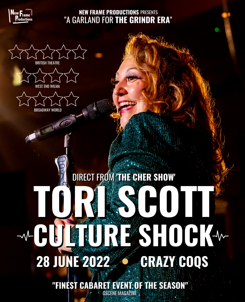 Tori Scott: Culture Shock is a celebration of survival, vodka, and new beginnings. With songs by an eclectic range of artists including Whitney Houston, Elton John, and Liza Minnelli, Tori will blow you away with her "powerhouse vocals" (The Curtain Up Show).